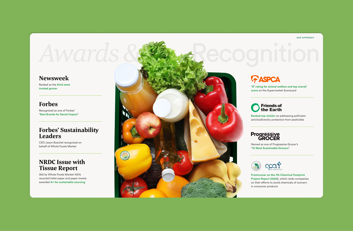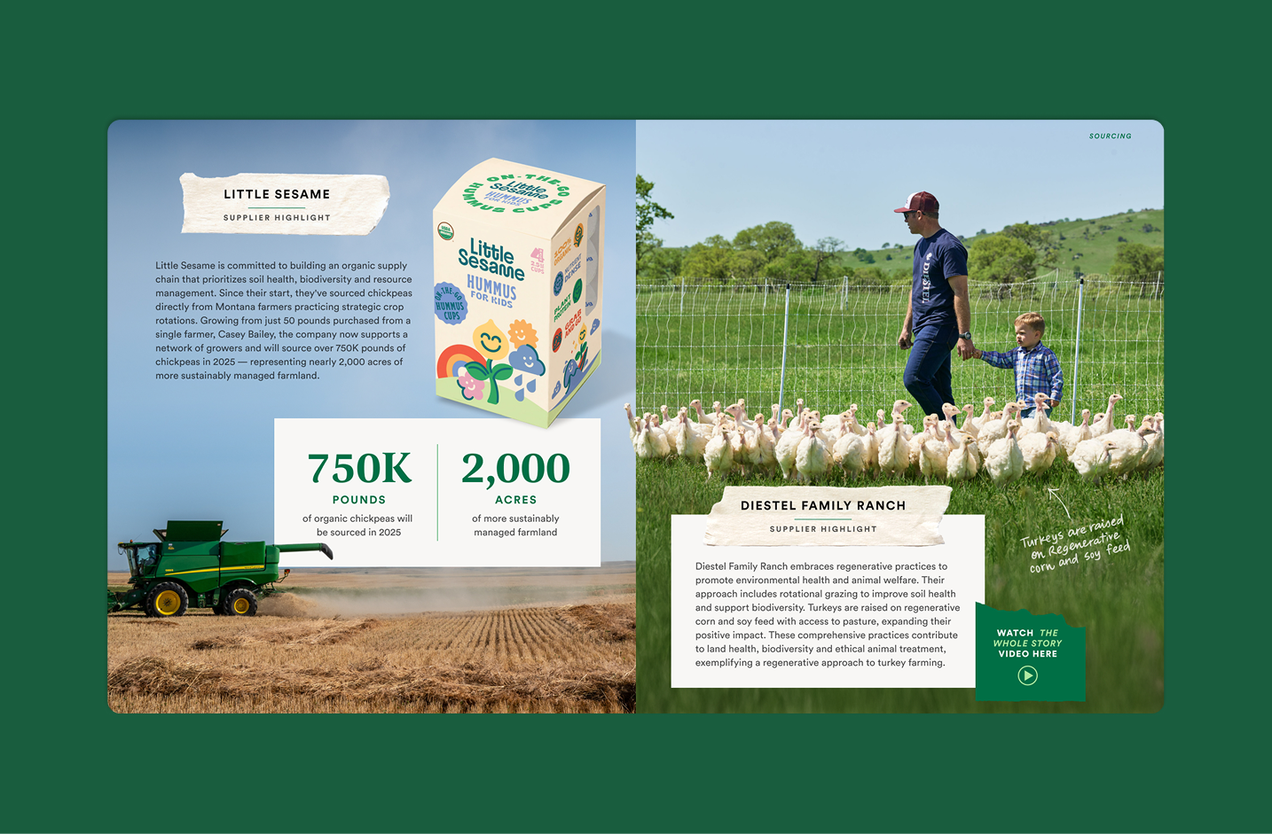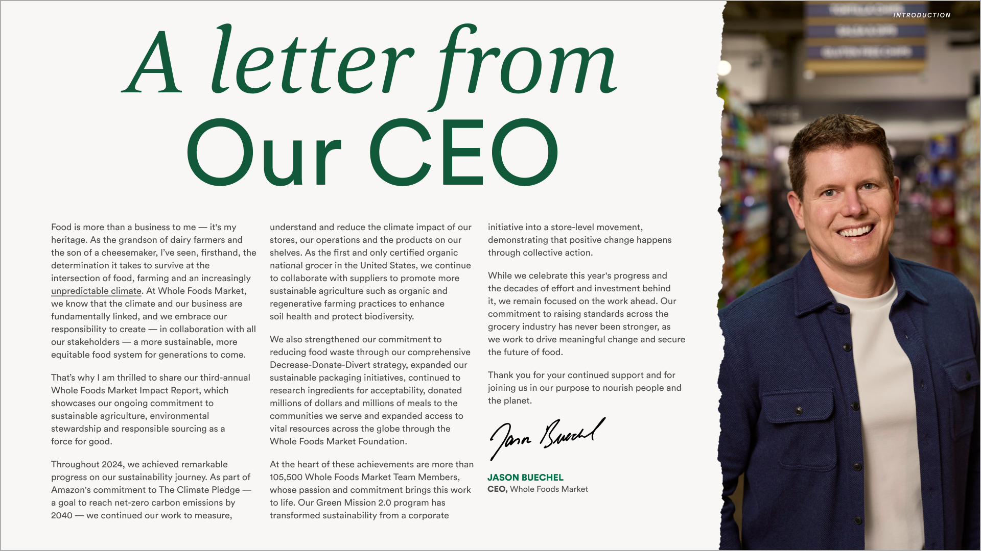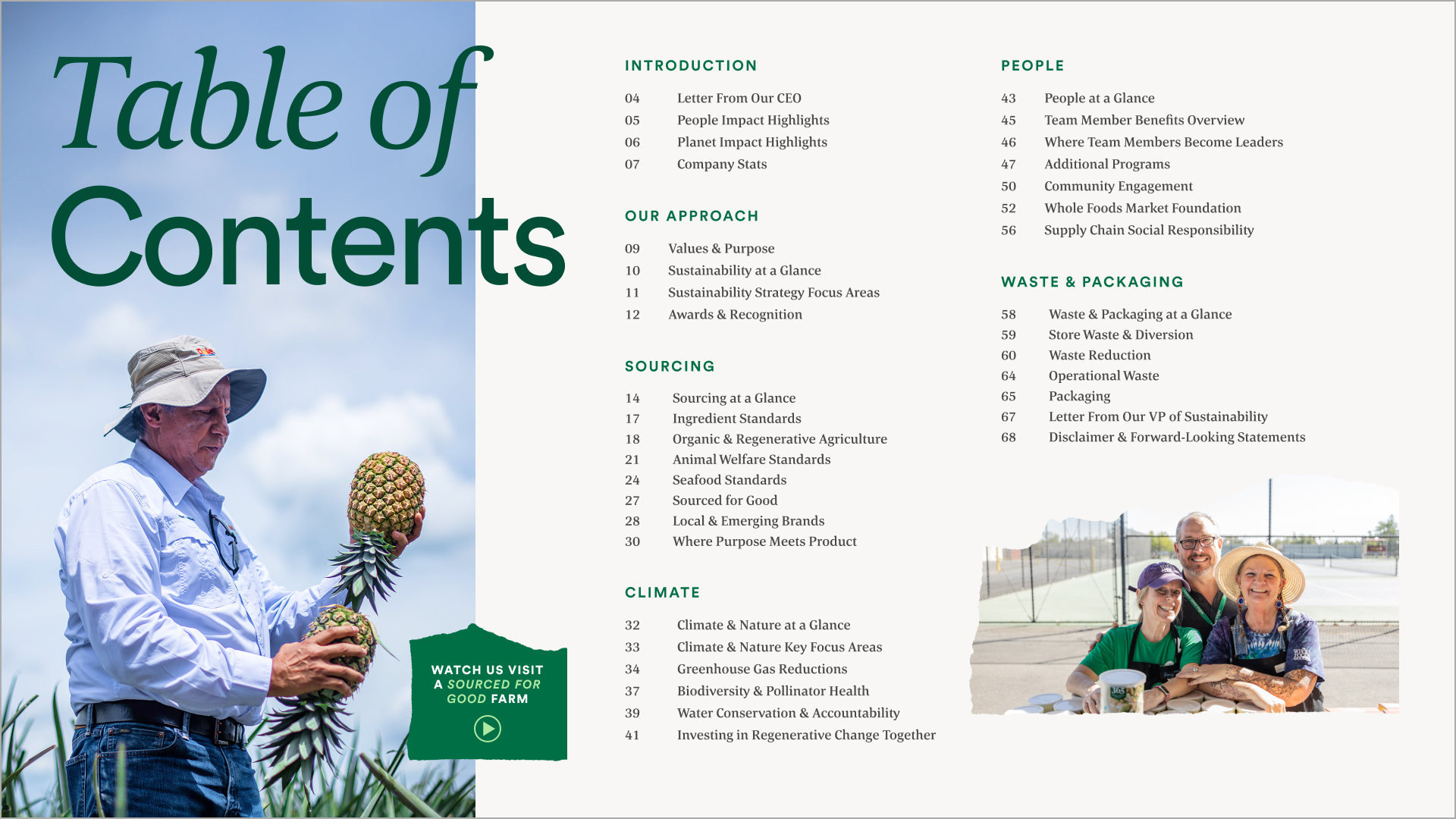 Collaborated with a fellow Brand Designer on the 2024 Whole Foods Market Impact Report, creating custom hand-drawn lettering throughout the report. Sourced imagery and designed timelines, infographics, and data visualizations to enhance storytelling and improve data clarity.AGENCY